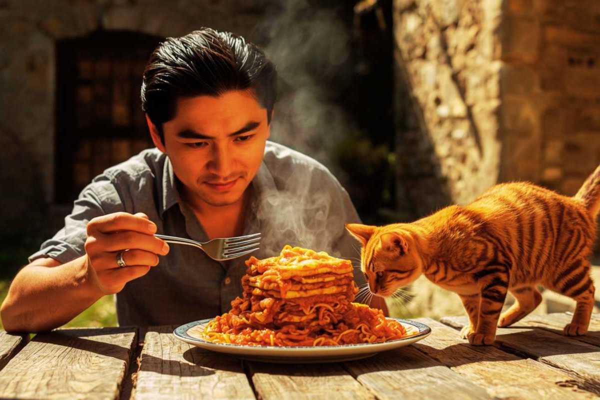 Für mein Nudelfeature in den späten 1990er Jahren habe ich einige Quellen angezapft. Wenn es um Nudeln geht, vor allem um das Thema Lasagne, darf natürlich eine Katze nicht fehlen: Garfield! Natürlich ist der Kater die Referenz, wenn es um das Verschlingen von Unmengen italienischer Nudeln und vor allem Lasagne geht. Nun, rund 30 Jahre später, habe ich einmal die KI gefragt, wie es denn wohl aussähe, wenn man eine Katze mit Nudeln zusammenbringt. Auch mit Lasagne. Und was ist wenn ein Mensch hinzu kommt? Wer gewinnt in der Konkurrenz um die Nudel auf dem Tisch? Dazu diese Bildergalerie von Thomas Berscheid mit Bildern, die per künstlicher Intelligenz entstanden sind.