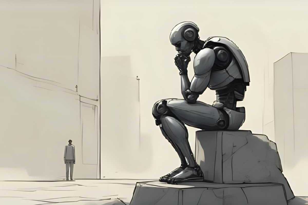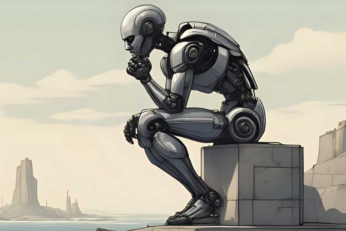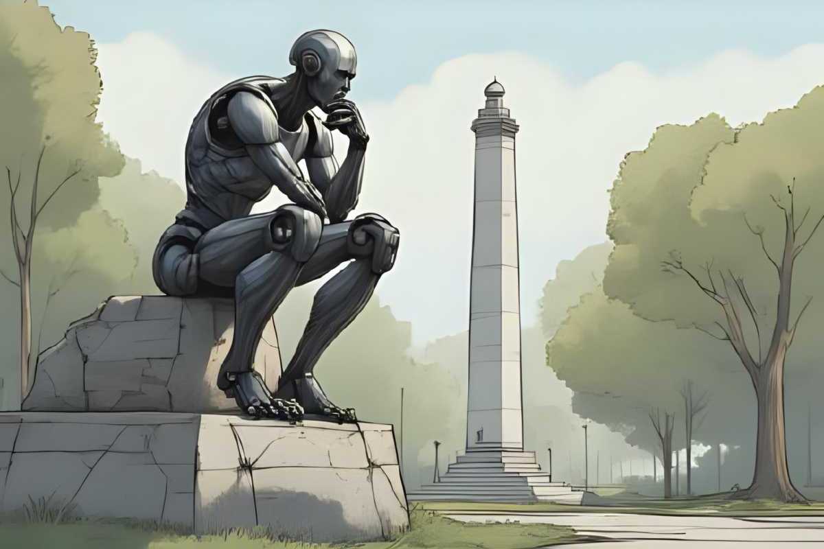 Roboter als Auguste Rodins Kunstwerk Der Denker: KI Bildergalerie von Thomas Berscheid